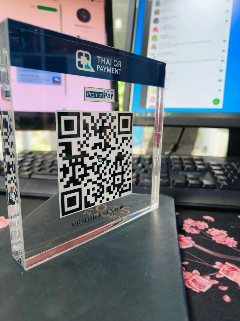 เหมาะสำหรับ: วางบนเคาน์เตอร์คิดเงิน, ป้าย QR Code สแกนจ่ายเงิน, หรือป้ายแนะนำพนักงานต้อนรับ